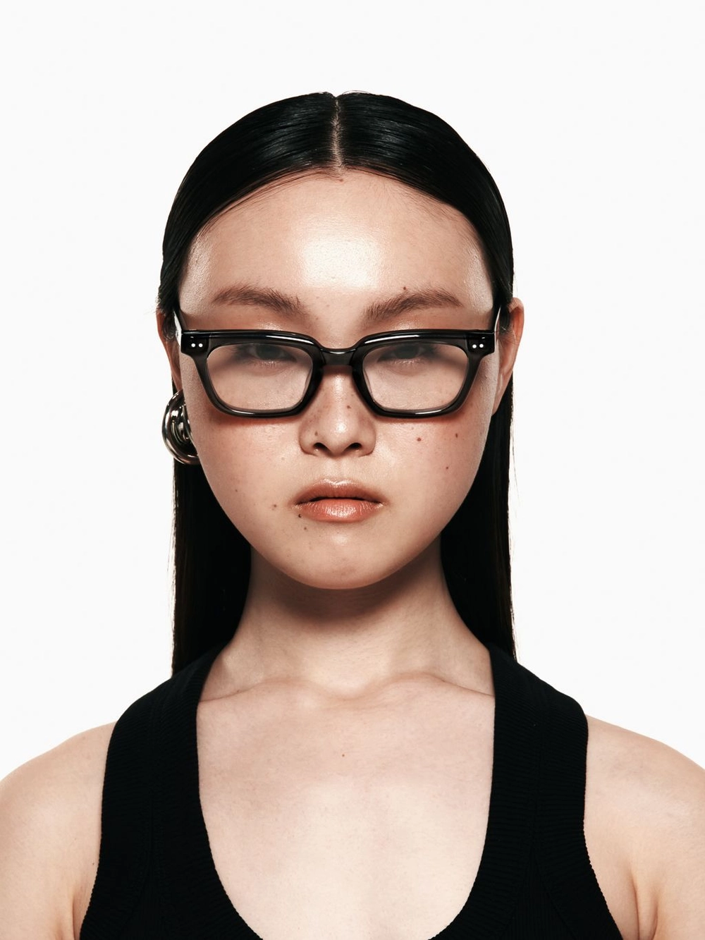 오프브로드웨이 2025 컬렉션의 'Rizla(리즐라)' 안경은 헥사곤 림 실루엣과 구조적으로 커팅된 상단부 디자인이 특징입니다. 각진 로우 실루엣이 지적인 이미지를 연출하며, 템플에 더해진 실버 디테일은 우아한 감각을 강조합니다. 한쪽에만 배치된 로고 장식이 세련된 분위기를 더합니다.