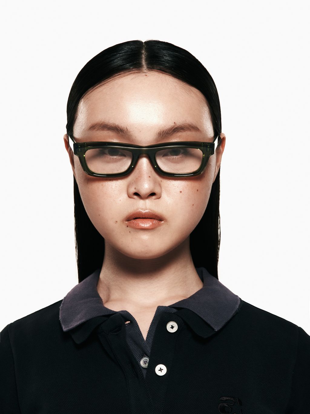 오프브로드웨이 2025 컬렉션의 'Worship(워십)' 안경은 볼드한 전면부와 직선적인 템플이 조화를 이루는 낮은 사각 실루엣이 특징입니다. 템플에 더해진 실버 디테일이 우아함을 강조하며, 한쪽에만 배치된 로고 장식이 세련된 분위기를 더합니다.
