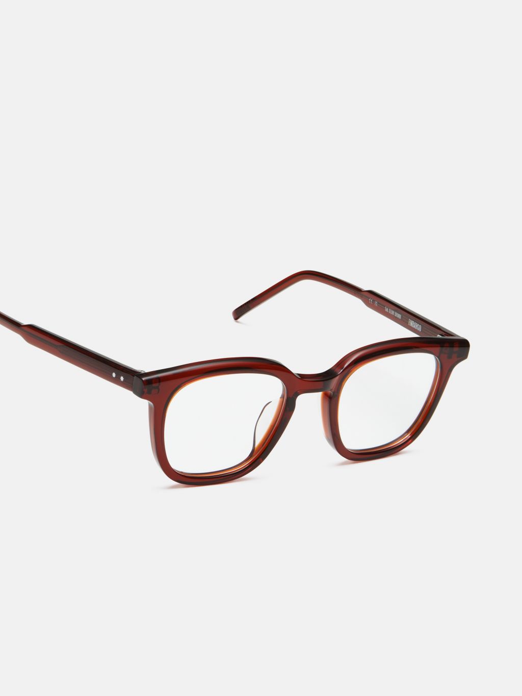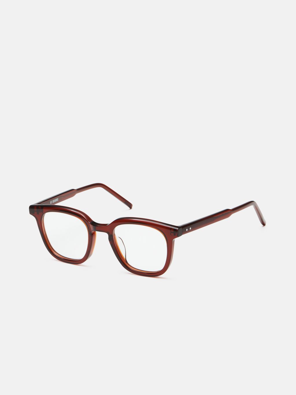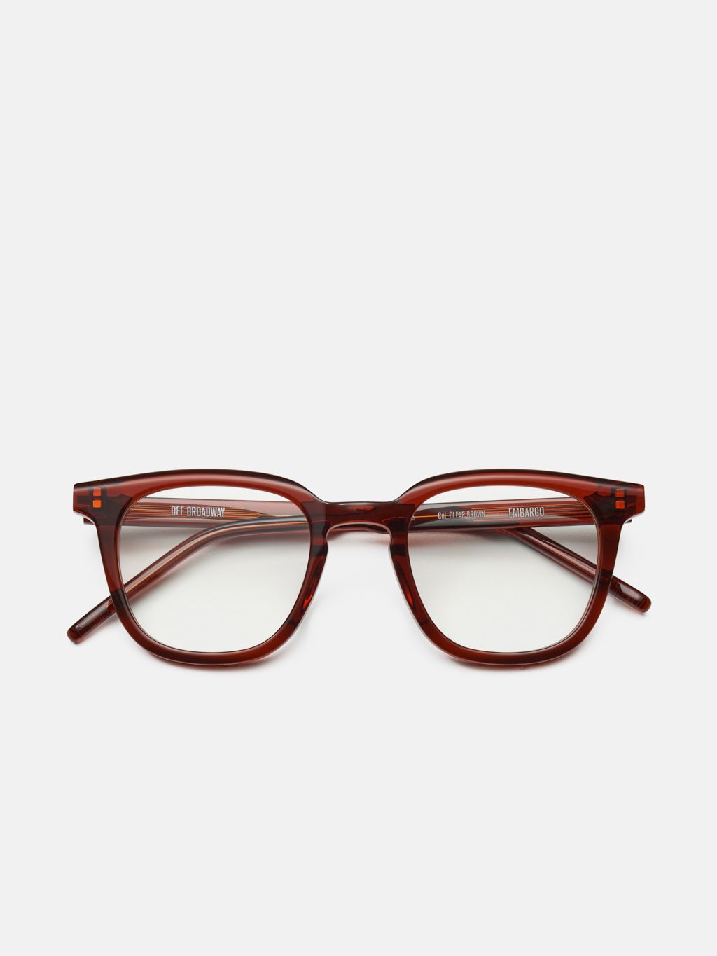 'EMBARGO(엠바고)' 안경은 스퀘어 웰링턴 쉐입과 클래식한 키홀 브릿지 디자인이 특징입니다. 일자로 뻗은 템플에 배치된 2개의 메탈 장식이 우아함을 더합니다.