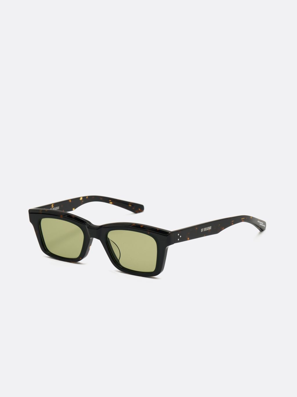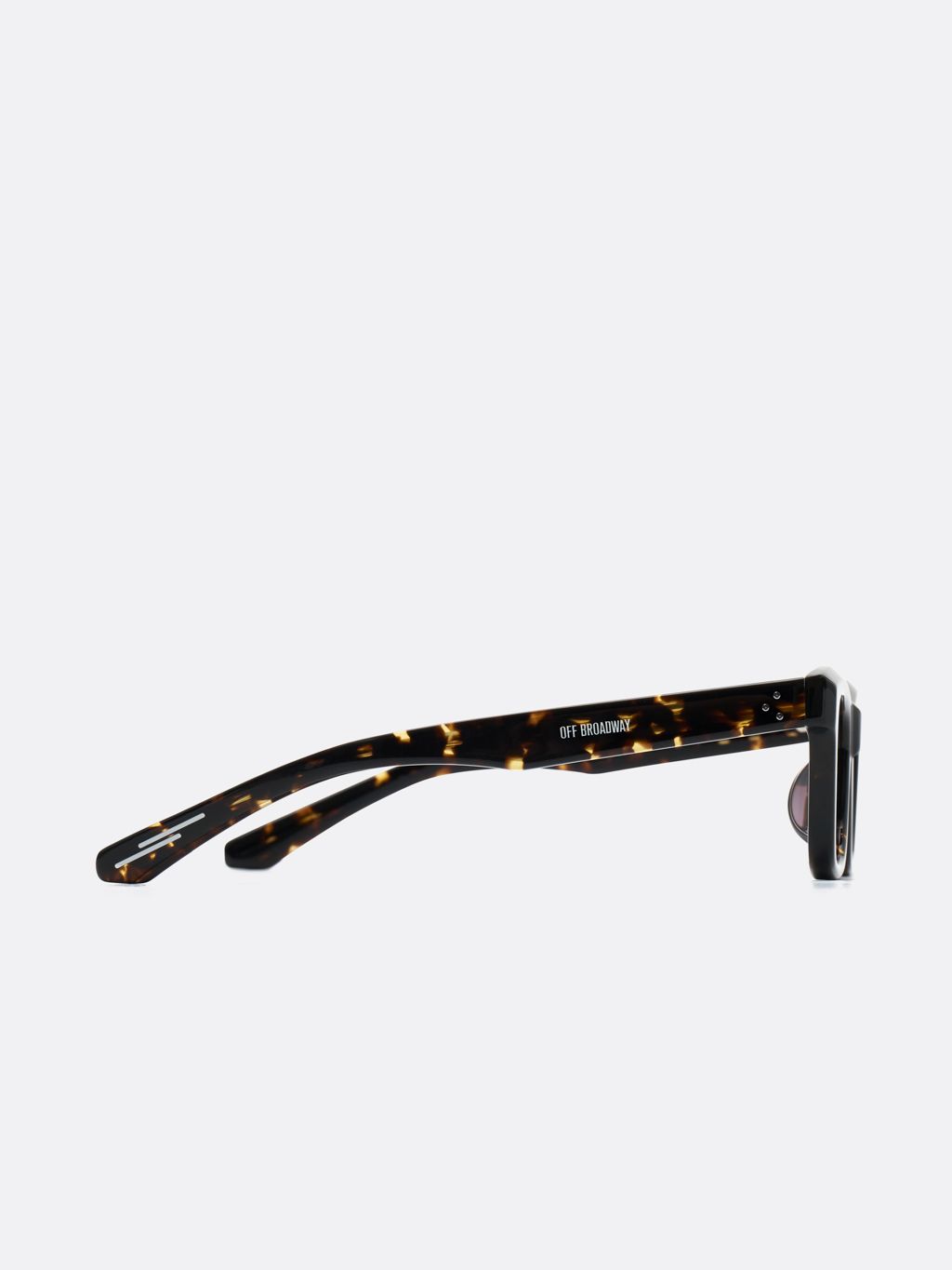 낮은 사각형 형태에 윗부분 모서리를 비스듬히 다듬어 조각적인 멋이 특징입니다. 단순하면서도 세련된 디자인으로 언제나 멋스럽게 착용할 수 있습니다. 곧게 뻗은 다리 부분에는 '오프브로드웨이' 글자와 금속 장식이 더해져 세련된 분위기를 완성합니다.