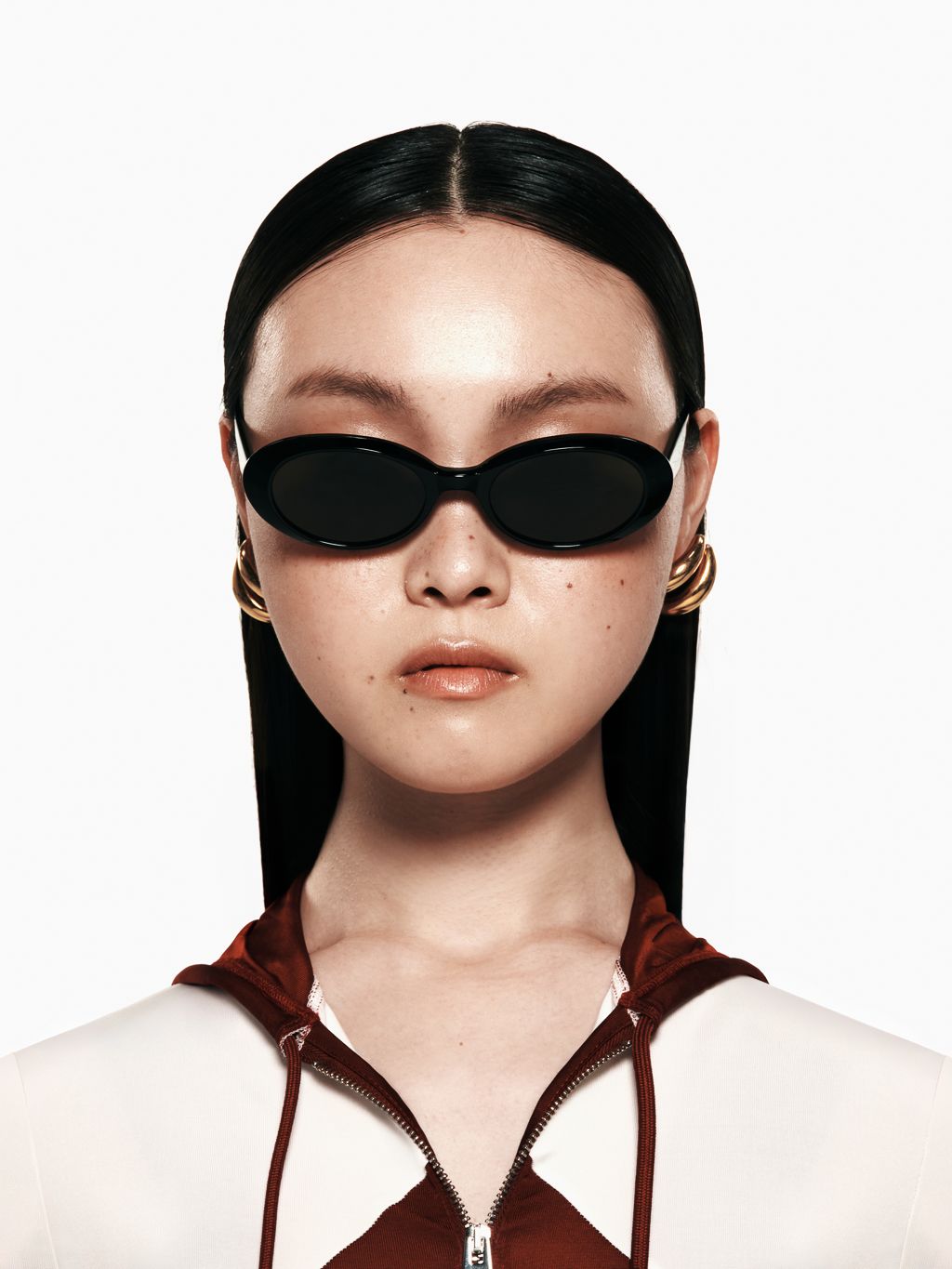 타원형 실루엣에 슬림한 테와 울트라 플랫 렌즈를 적용한 가벼운 프레임입니다. 프레임 전면부의 구조적인 사선 조각이 모던한 감각을 더합니다.